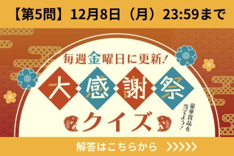 クイズ【第5問】への解答ができるのは、11/28(金)0:00~12/8(月)23:59までです。