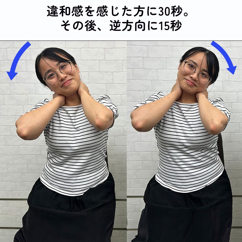 首を左右に倒して、違和感を感じるかチェックしてみましょう。