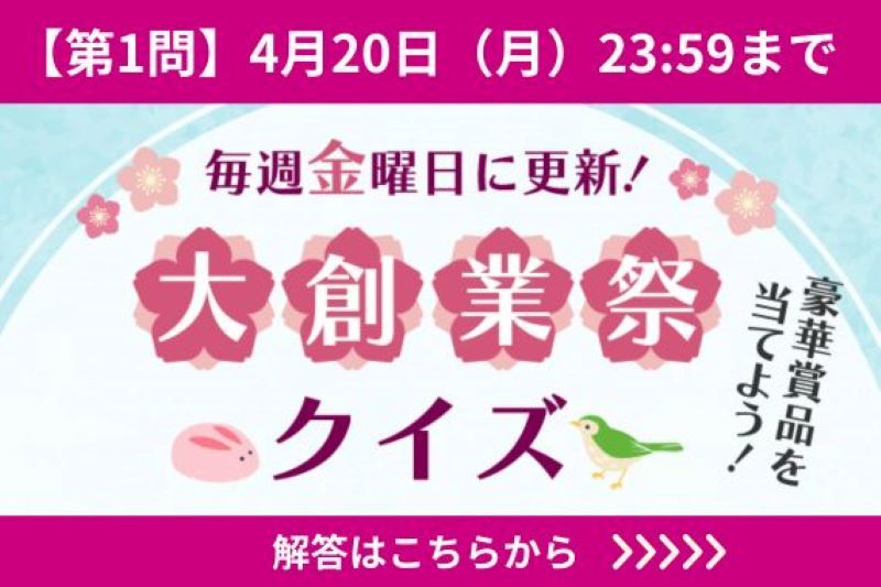 「大創業祭クイズ」は、4/10(金)~5/11(月)23:59までです。