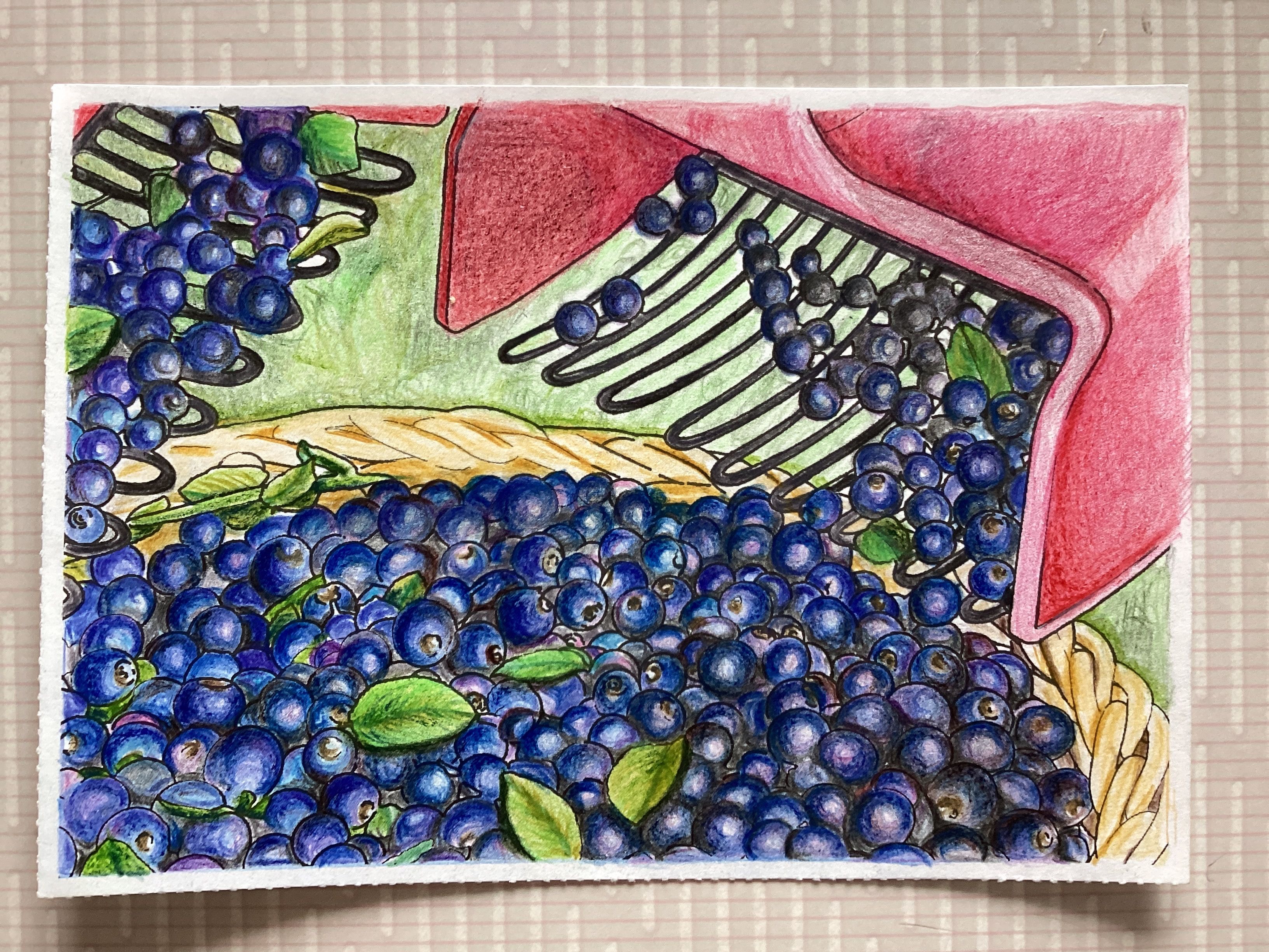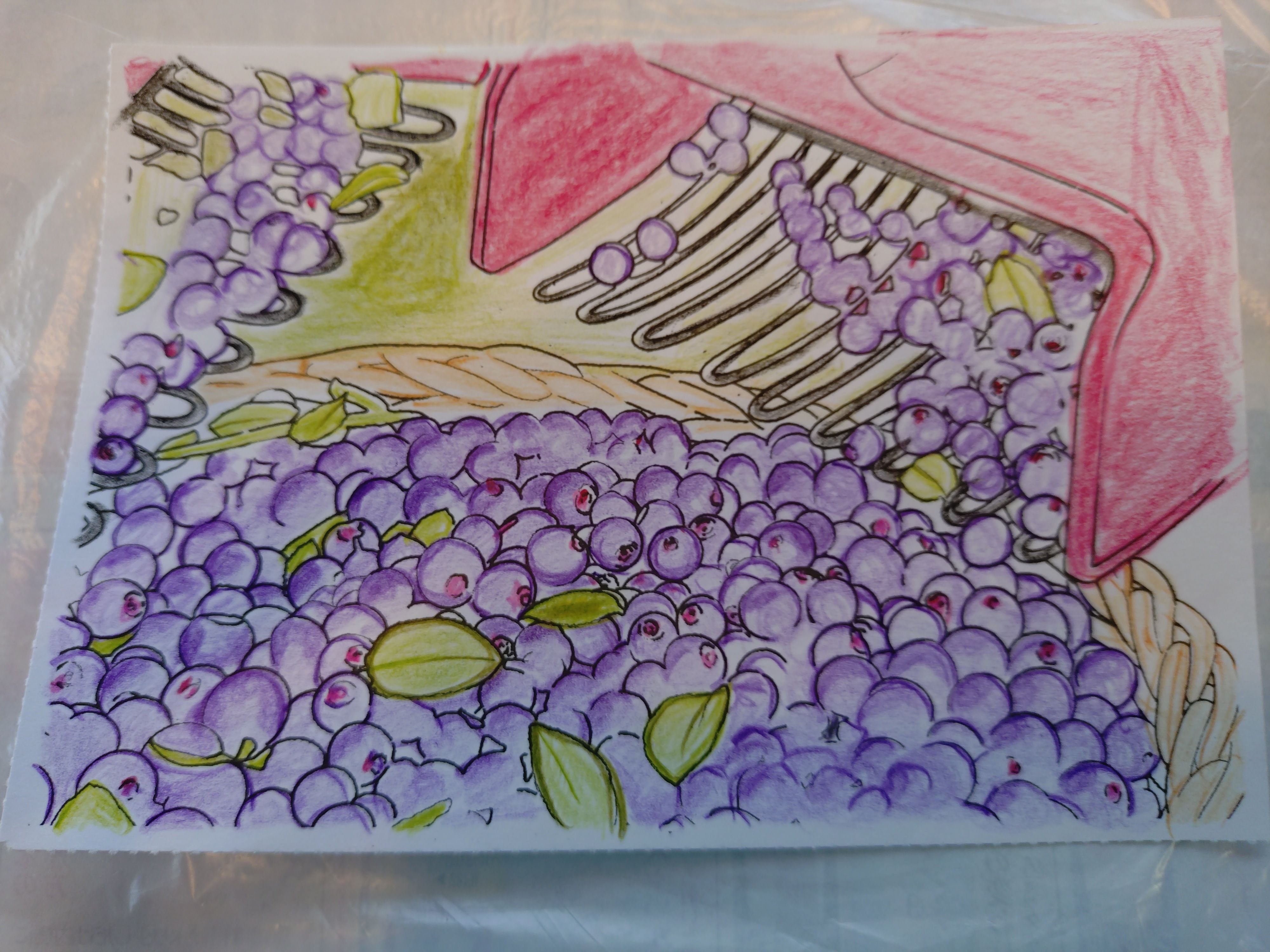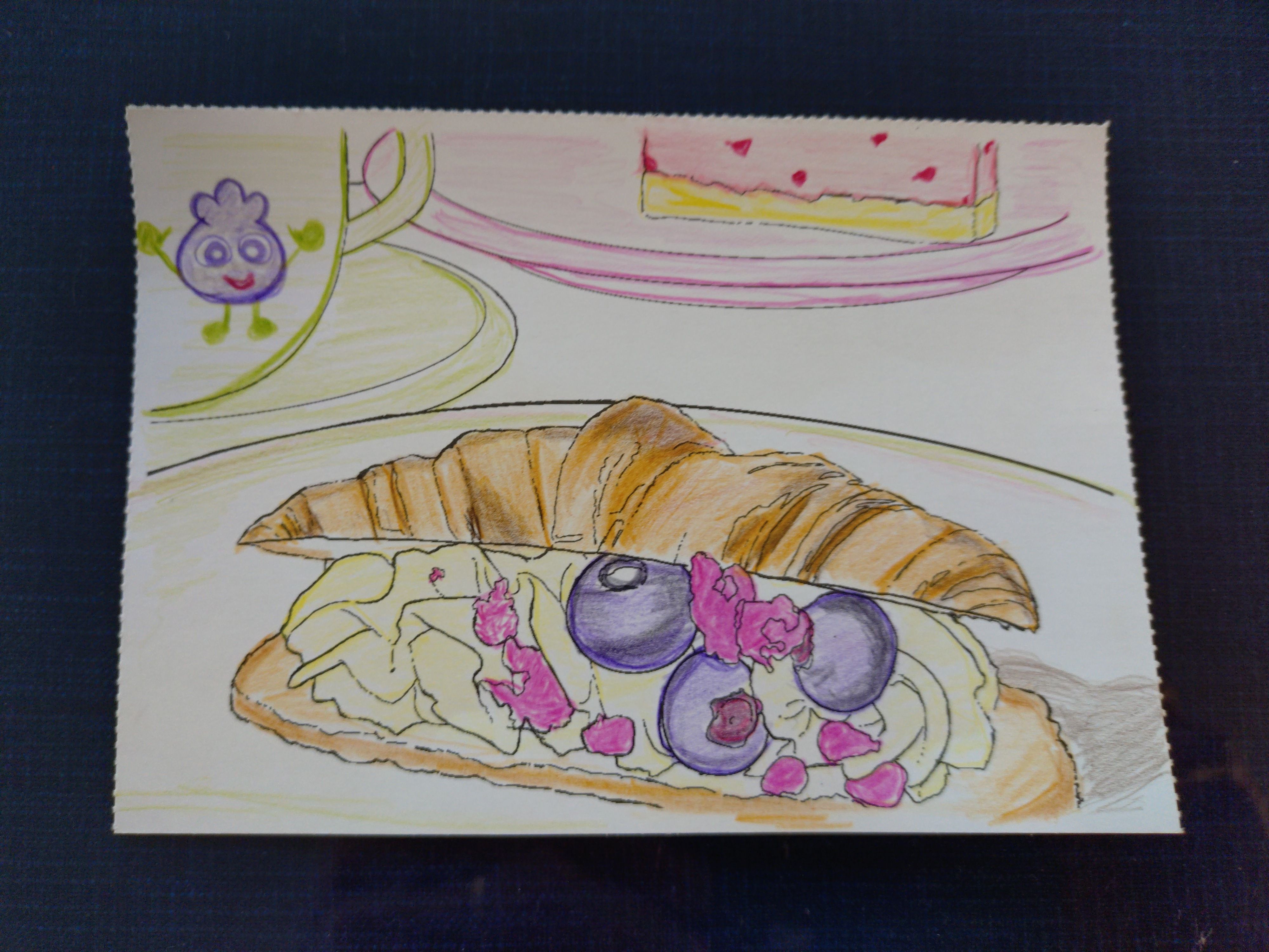 わたしがもっているお気に入りのブルブルくんのかばんの絵をかきました。