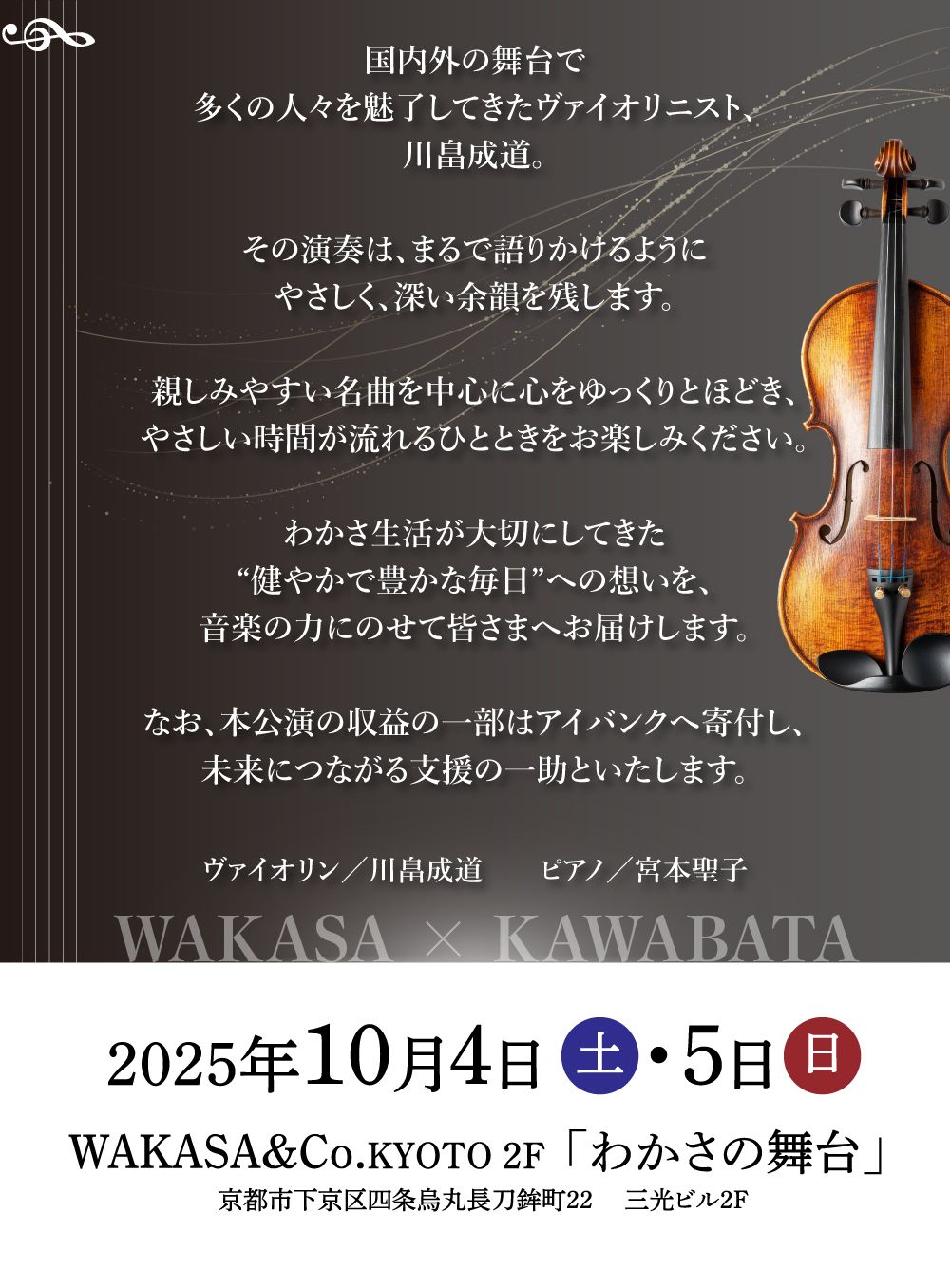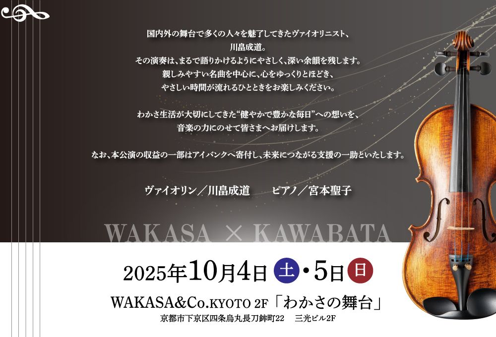 わかさ生活とは2013年にご縁し、以来「お客様感謝祭」やアイバンクミュージカルで演奏を披露いただくなど、わかさ生活の社会貢献活動にご協力をいただいてきました。