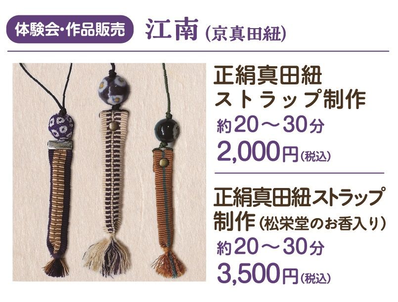 ②	正絹真田紐ストラップ制作(松栄堂のお香入り) 約20~30分 3,500円(税込)