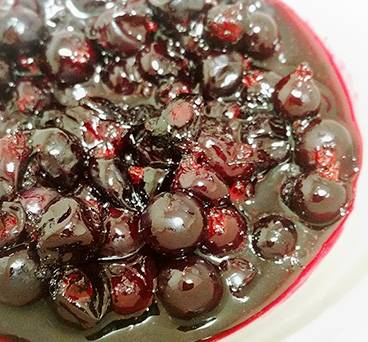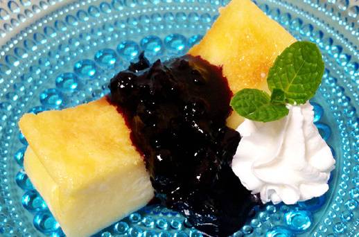 - 【4】カシスジャム、生クリーム、ミントの葉を飾って完成。