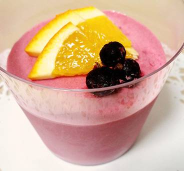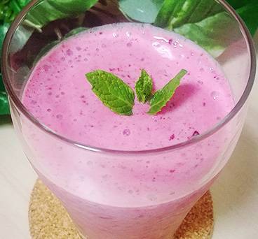- 【1】冷凍カシス、ヨーグルト、牛乳、はちみつ、グラニュー糖をミキサーにかける。