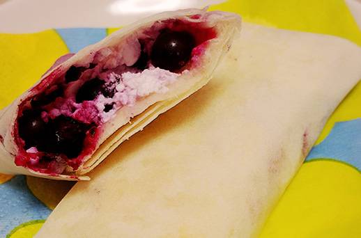 - 【1】春巻きの皮にカシスジャムとチーズをのせてまく。