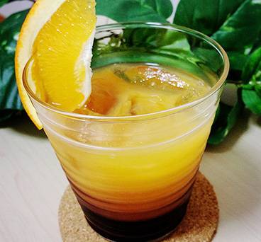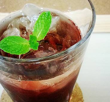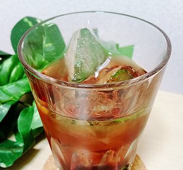 - 【1】冷やしたグラスにカシスリキュールを入れる。