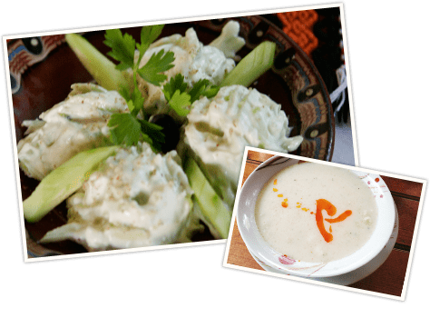 日本ではジャムやお砂糖、フルーツなどと一緒にデザートのような感覚でヨーグルトを食べますが、ブルガリアではサラダやスープなどに調理して食べられます。