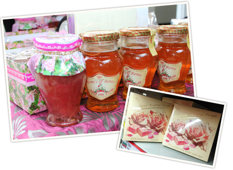 お店にはバラのお菓子やはちみつ、お酒などさまざまなバラ商品が並んでいます。