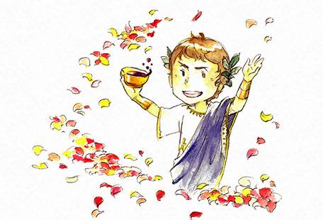強大となったローマ帝国の第5代皇帝で、暴君として有名なネロのバラ三昧は有名です。彼のバラへの執着はすごいものでした。宴会場をバラの花で埋め尽くしたり、天井からバラの花びらを土砂降りの雨のように降らせたりしたそうです。その重みで来客が窒息したという話まで残されています。また、ぶどう酒にバラの香りをつけて、贅沢に振るまったという話もあります。 入浴の際、湯の中にたくさんのバラ水をいれ、湯上りにはローズオイルを体に塗らせたとまでいわれています。