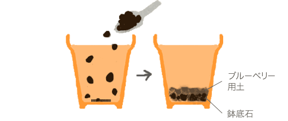 ブルーベリー用土を使う(※ブルーベリー用土は園芸店で販売されています。)