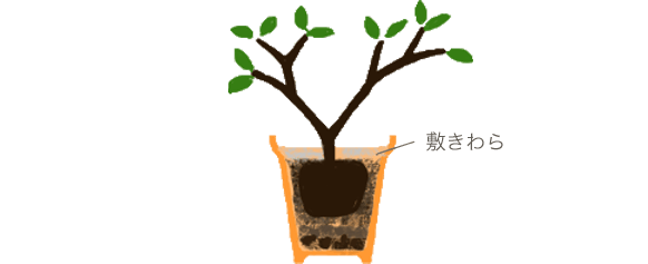 水やりは土の表面が乾いたら行ってください。目安としては、春・秋は1日1回、夏は1日2回程度です。水の量は、鉢の底から水が出てくるくらいたっぷりとやりますが、排水不良で根腐れの原因となる場合がありますので、底に水を張らないよう気を付けましょう。新しい枝の先の柔らかい展開葉が下を向いてうなだれていたり、大きくなりつつある実がしぼんでいるような時は、水不足の証拠。すぐに水をやりましょう。