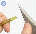 3. 剪定ばさみで枝を切った後、よく切れるナイフで穂の先をなめらかに整えます。