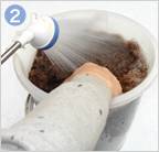 2.別容器にピートモスを入れ、水を吸収させ湿らせます。