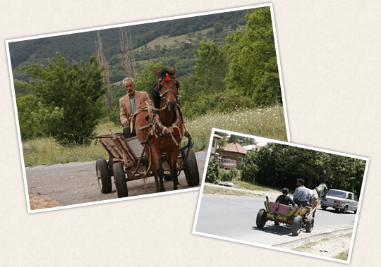 移動や農作物の運搬には馬車が欠かせません。収穫した後のバラも、馬車で抽出施設まで運ばれているものがあります。